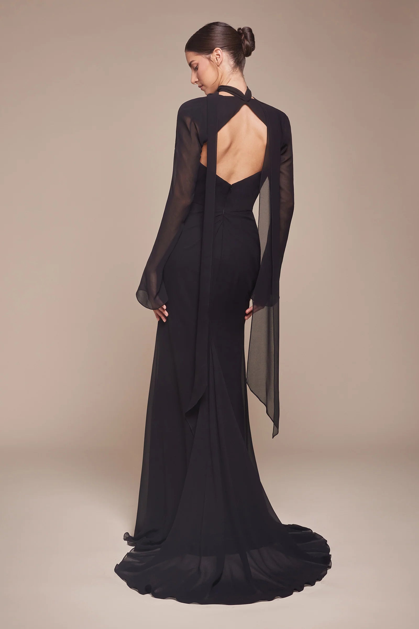 Embrace timeless elegance with our strapless softly draped chiffon dress, designed for the woman who cherishes sophistication. The slight scoop neckline adds a touch of delicate charm, while the softly draped chiffon flows gracefully, creating a silhouette that is both flattering and enchanting. Elevate your look with the removable long sleeve sheer chiffon bolero, an exquisite addition that can be wrapped around the body in multiple ways, offering versatile styling options to suit any occasion. Perfect for weddings, gala events, or any special evening, this dress ensures you’ll radiate grace and beauty with every step. Indulge in the allure of this captivating ensemble and let your elegance shine.