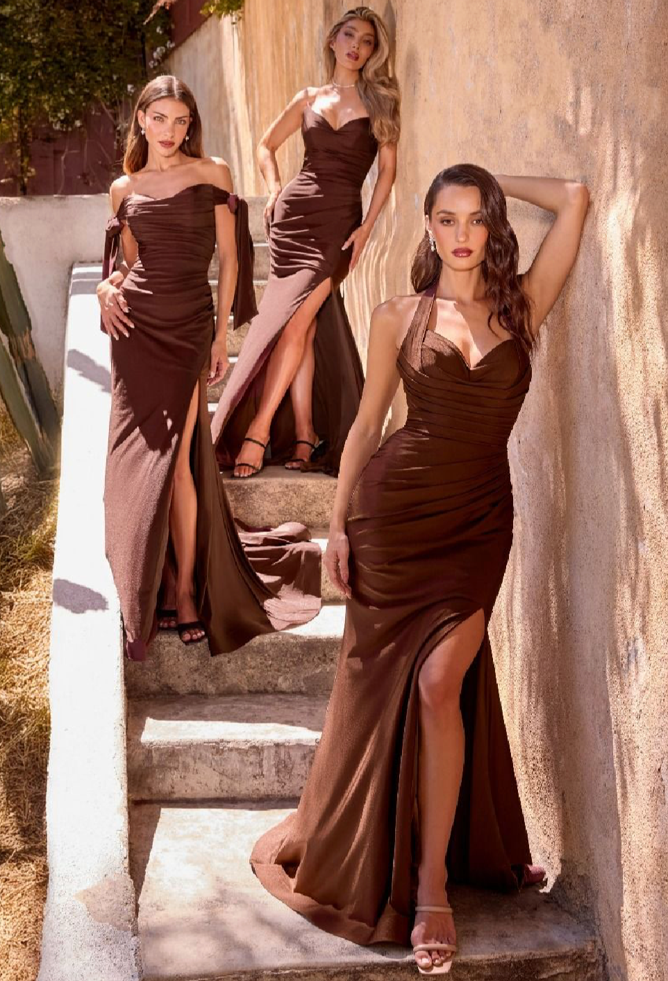 Expertly crafted from a premium stretch jersey fabric, this dress features intricate tucks and ruching to enhance your curves. The off-the-shoulder neckline is accented by elongated ties and a dramatic fishtail hem with a sleek front slit, allowing for easy movement and added flair.